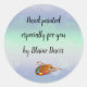 Dieser bearbeitbare Aufkleber verfügt über eine Farbpalette eines Malers mit Pinselstrichen mit einem Wasserfarbenhintergrund im Farbverlauf. Im Text steht "Handgemalt speziell für Sie mit (Name). Der Text ist editierbar, sodass Sie sowohl die Wörter als auch den Stil, die Größe und die Farbe des Schriftartes ändern können und es zu Ihrem eigenen machen können! Genießen Sie Ihre neue Editierbare Malerpalette speziell für Ihren klassischen Rundaufkleber!
