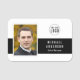 Foto-Namensschild mit einer bearbeitbaren Hintergrundfarbe im Zentrum (klicken Sie auf Anpassen, um zu ändern) und die Sie auch Ihr Logo hinzufügen können.