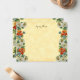 Editierbare Mitteilungskarten mit eleganten Schriftzeichen in Braun mit Rändern aus orangefarbenen und weißen Mohnblüten und blauen Maisblumen auf einem rustikalen Imitat Pergament Hintergrund.