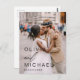 Hochzeit Speichern Sie die Datumskarten, die ein Foto auf der Vorder- und Rückseite haben. Die Save the Date-Karten enthalten eine moderne, handgeschriebene, kursive Schriftzeichen-Typografie, die elegant, einfach und modern nach einem einfachen Hochzeitstag-Fest zu verwenden sind.