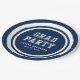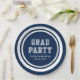 Die Papiertafel "Graduation Party" mit weißen Streifen und den Worten "Grad Party" vor einer bearbeitbaren Hintergrundfarbe (klicken Sie auf Anpassen, um sie zu ändern). Personalisieren Sie es, indem Sie den Platzhalter-Text ersetzen. Für weitere Optionen, wie zum Beispiel den Schriftart zu ändern und ihn zu vergrößern oder zu verändern, klicken Sie auf den Button "Anpassen". *Bitte beachten Sie, dass das Zazzle-Wasserzeichen, das in der Zoomvorschau angezeigt wird, NICHT auf dem gedruckten Endprodukt erscheint. © Rosewood and Citrus