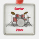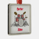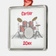 Dieses Metal-Ornament verfügt über ein rotes Drum-Set Der Name und das Datum können personalisiert sein, also ändern Sie sie und ändern Sie auch die Schriftart-Größe, Stil, Farbe und Platzierung!Mach' es dir zu eigen!