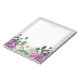 Weiße Blumendarstellung am Ende der Seite, umgeben von einem Blassholzrahmen. Ein mädchenhaftes Notizblock mit künstlerisch lila Blume und grünem Blattrand, das Gärtnern ein niedliches Frauengeschenk machen würde. Das Notizblock enthält eine Textvorlage, in der Sie Ihren Namen hinzufügen oder als Notizen verlassen werden können.