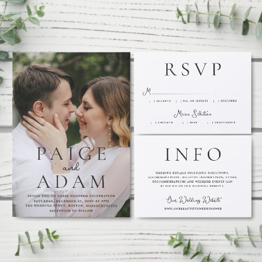 Modern editorial style wedding stickers with your names in bold typography over your favorite photo. A clean and simple design for a wedding during any time of year.