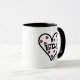 Die EDS-Herz-Tasse, die ein großes kennzeichnet, hören mit den kleineren rosa Herzen, die im Schwarzen innerhalb des großen Herzens mit den Buchstaben EDS innerhalb des großen Herzens für Ehlers-Danlos Syndrom umrissen werden.