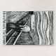 Das Puzzle mit dem Schrei-Puzzle. Schwarz-Weiß-Version des berühmten Gemäldes von Munch mit dem Namen dieses künstlerischen Meisterwerks und dem unten gedruckten Künstlernamen. Dieses große Puzzle ist 20 x 30 cm groß und besteht aus über 1000 Teilen.