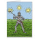 In dieser originalen Illustration von Richard H. Fay wird Edward von York dargestellt, der als Ritter in voller englischer Tellerharze mit einer spätmittelalterlichen Poleaxe verkleidet ist. Drei Sonnen in Glanz, symbolisch für das Phänomen, das am Morgen der Schlacht von Mortimer's Cross zu beobachten war, leuchten im Himmel oben.