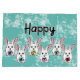 Niedliche, eierförmige Kaninchen, die in einer Reihe stehend sind, um Ihnen ein frohes Osterfest zu wünschen!