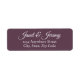 Eggplant Farbe Rücksendeadressen-Aufkleber für Ihre Hochzeitseinladung Briefumschläge mit dem Namen der zukünftigen Braut und Bräutigam in weißem, stilisiertem Skript. Personalisieren Sie Ihre Labels durch Bearbeiten mit Ihren eigenen Namen und Ihrer eigenen Adresse.