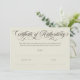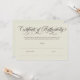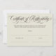 Elegantes Echtheitszertifikat in eggshell und braun mit einem Wirblen Kalligraphieskript.