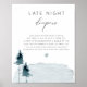 Dieses abendliche Baby-Duschspielzeichen mit rustikalen Schieferblau-Winterkiefern, Aquarellsteinen und handgeschriebenen Schriftart. Es ist das perfekte Babyduschzeichen für Ihre Boho-, Rustikal-, Berg- oder Waldbaby-Dusche.
