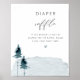 Dieses Windeln-Baby-Duschspielzeichen mit rustikalen Schieferblau-Winterkiefern, Aquarellsteinen und handgeschriebenen Schriftart. Es ist das perfekte Babyduschzeichen für Ihre Boho-, Rustikal-, Berg- oder Waldbaby-Dusche.