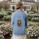 The artwork blends ancient Egyptian symbolism with a modern, feminine edge, making this denim jacket a true statement piece.