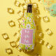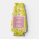 Die Fun Flasche cooler zeigt ein Retromuster aus weißen Blume mit rosa und grünen Mittelpunkten auf gelbem Hintergrund. Zentriert rosa Textfeld mit anpassbarer "Ehefrau des Party"