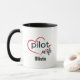 Ehefrau, Herz & Flugzeug, Einfache moderne Tasse Zeigen Sie Ihre Liebe und Stolz mit unserer einfachen, modernen Tasse, mit einem charmanten Herzdesign, das die Worte "Pilot Ehefrau" umschließt, komplett mit einem kleinen roten Flugzeug am Ende des "Piloten" und einem spielerischen roten Herz auf dem Buchstaben "i", am Ende der Abbildung sitzt eine individuell anpassbare Option für einen Namen - perfekt für alle Luftfahrt Ehefrau! Schau dir die passende Tasse für den Mann an! Copyright steigt in Style Designs LLC.