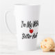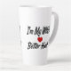 Tasse mit Ich bin die bessere Hälfte meiner Ehefrau in 3D-Schwarztext. Erhältlich in verschiedenen Größen.