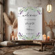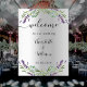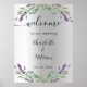 Ein Imitat silber aussehender Hintergrund. Mit Lavendelblumen, Blume und Eukalyptus-Pflanzen dekoriert. Violett und schwarze Buchstaben. Personalisieren und fügen Sie Ihre Namen und das Hochzeitstermin.