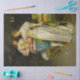Dieses Design zeigt ein Gemälde des italienischen Künstlers Federico Andreotti (1847-1930). Es zeigt ein elegant gekleidetes Ehepaar nach der Hochzeitsfeier: nach den Freuden der jungen Liebe setzen sie sich in das Glück des verheirateten Lebens ein. Die Braut trägt ein elegantes weißes Kostüm, während ihr Mann ein blau-rosa Outfit trägt. Beide Kostüme scheinen aus Seide und anderen feinen Stoffen zu bestehen. Die Dame trägt eine Perlenhalskette. Der Mann lächelt glücklich an seiner Ehefrau, während er sich auf den Arm hält. Auf dem Boden steht eine rosa Rose, die während der Zeremonie geworfen worden sein könnte.