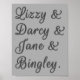 Ein niedliches Design, perfekt für alle, die Jane Austen Romane Liebe. 'Lizzy & Darcy & Jane & Bingley' Pride and Prejudice Paare auf grauem Hintergrund. Akzentuieren Sie Ihren Stil und Raum mit dieser niedlichen Kunst!