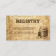 Eheschließungskarte für eine Hochzeitseinladung mit Cowboystiefeln, Streichelampen und Lauf über einem Holzhintergrund. Sie können den Text mit Ihren Informationen bearbeiten. Sie können auch das Wort "Registrierung" verschieben, verändern oder löschen. Bitte sehen Sie sich meine anderen passenden Artikel in dieser Sammlung an. Einladung: http://www.zazzle.com/country_wedding_invitation_with_cowboy_boots-256585105160644183?rf=238757713317449265 UAWG: http://www.zazzle.com/country_wedding_rsvp_for_rustic_wedding_3_5x5_paper_invitation_card-256679025784733925?rf=238757713317449265 Und mehr!