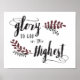 Schöne kalligraphische Typografie mit schwarzen Wörtern, "Ruhm zu Gott im Höchsten". Das Design ist umgeben von eleganten Blumengelüsten in Bordeaux und hellrosa Akzenten.