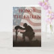 Ehre den Gefallenen mit einem letzten Lob. Zu Ehren unserer gefallenen Mitglieder der Streitkräfte. Soldat kniet vor dem Grab seines gefallenen Kameraden. Im Hintergrund die Flagge der USA.