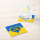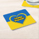 Quadratischer Papierserviettenuntersetzer mit der Flagge der Ukraine, Herz in den ukrainischen Farben und Text "Ehre der Ukraine" in ukrainischer Sprache