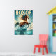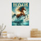 Ein atemberaubendes Kastanienpferd, die Mähne fließt durch türkisfarbenes, klares Wasser, strahlende Kraft und Schönheit. Das Sonnenlicht strahlt den Glanz ab und schafft ein dynamisches und lebendiges Set gegen einen ruhigen blauen Himmel mit sanften Wolken. An der Spitze steht "Ehre" mutig in elegantem, gelben Drehbuch, das Würde und Mut symbolisiert. Unter dem Pferd wird Aristoteles inspirierend Zitat — "Würde besteht nicht darin, Ehren zu besitzen, sondern sie zu verdienen." — in anmutigem gelben Schriftart mit seinem Namen in kleinerem Druck dargestellt. Gerahmt von schlichten schwarzen Rändern, zelebriert dieses Poster Freiheit, Kraft und Widerstandskraft.