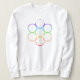 Das Sweatshirt der Frauen mit dem Symbol Ei der Heiligen Geometrie in den Farben, die das Chakras-Design repräsentieren. Verfügbar in mehreren Stilen und Größen