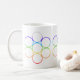 Tasse mit diesem Sakralen Geometriesymbol Ei des Lebens in den Farben, die das Chakras-Design darstellen. Verfügbar in mehreren Stilen und Größen