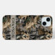 Passen Sie diese Eichenbaum-Tarnung iPhone 15 Plus-Hülle mit Ihrem Namen in einer trendigen modernen CAP-Schrift in Grau auf opaker Cremefarbe an. Es ist männlich und perfekt für Ihren Lieblings-Militär-, Jagd-, Land- oder Outdoor-Fan!