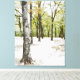 Bringen Sie die Natur mit diesem inspirierten Leinenprint in eine winterliche Waldlandschaft mit Eichenbäumen in Erdfarben.