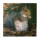 Ein kleines graues Eichhörnchen sitzt niedlich und isst Nüsse an einem schönen sonnigen Herbsttag im Bute Park, Cardiff, Wales.