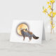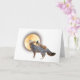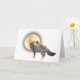 Auf dieser ungewöhnlichen Halloween-Karte fährt ein Hexeneichhörnchen vor einem großen Vollmond einen grauen Fuchs.