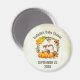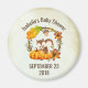 Das Baby Duschereignis spart den Dattelmagnet mit einem niedlichen Eichhörnchen, das hinter einigen orangefarbenen Wasserfarbenkürbissen stehend ist. Ein Laubkranz umgibt sie mit Eichenblättern, orangefarbenen Blume und anderen Blätter. Hintergrund ist eine cremefarbene Farbe, mit einem rauen Blick um die Kanten.