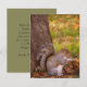 Diese hübsche Einladung eignet sich perfekt für Ihre Erntedank Ansammlung oder auch nur ein Herbst-Dinner-Party vor der Lustlosigkeit der Weihnachtsfeiertage. vorne ist ein Foto eines Eichhörnchens, das in den Herbstlauben spielt. Ihr anpassbarer Text geht auf die Rückseite.
