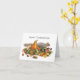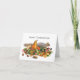Ein Eichhörnchen präsentiert eine Fülle von Früchten und Nüssen auf einem Flechthaufen auf dieser lustigen Erntedank-Karte.