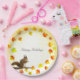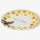 Niedliches Ferienhaus Eichhörnchen & Herbstlaube Erntedank Party Plate. Text kann personalisiert sein. Ideal für die Herbstsaison.