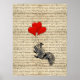 Diese niedliche romantische Vintage Eichhörnchen-Illustration lässt sich einfach mit roten Herzballons mit Ihrem Namen, Text oder Initialen anpassen.