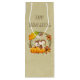 Alles Gute zum Erntedankfest Weingeschenktasche. Entworfen mit einem niedlichen Eichhörnchen, stehend hinter einigen orangefarbenen Kürbissen. Ein Laubkranz umgibt sie mit Eichenblättern, orangefarbenen Blume und anderen Blätter.