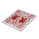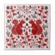 Rotes Eichhörnchenwald-Muster mit Kiefernzapfen, Kiefernästen, Eichen, Eichen-Blätter und Beeren. Ideal für ein Seehaus oder Saisonzimmer Dekoration. Originelle Kunst von Nic Squirrell.