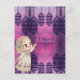 "Eine charmante und festliche Eid Mubarak Illustration mit einem magischen, pastellfarbenen Hintergrund. Das Bild zeigt ein niedliches Mädchen im Chibi-Stil, das ein hübsch detailliertes traditionelles Kleid mit bunten Blumenstickereien trägt. Sie hat einen süßen Ausdruck, trägt einen beigen Hijab, der mit Blume geschmückt ist, und zeigt fröhlich. Über ihr hängen elegante goldene Laternen aus einer dekorativen arabischen "Eid Mubarak" Kalligraphie. Auf der links Seite ist ein Halbmond mit Rose und Perlen geschmückt, was die festliche islamische Ästhetik noch verstärkt. Der Hintergrund ist ein weicher Lavendel mit Glitzern und Texturen, der das skurrile und feierliche Ambiente von Eid verstärkt."