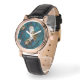 Uhr, Klassische Damenuhr mit schwarzen Lederarmband