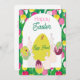 Niedliche Bräuche mit Ostereiern auf schönen Tulpen Muster Hintergrund mit Urlaubsstimmung.