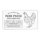 Vintag Fresh Eggs Labeldesign in Schwarz/Weiß, rustikale Schriftart und handgezeichnet Hühnerbild. Erstellen Sie berufliche Etiketten für frische Eier aus Freilandhaltung, Geflügelfleisch oder andere verwandte Erzeugnisse, indem Sie dieses bearbeitbare Rechteck verwenden. Benutzen Sie diesen Aufkleber auf Eierschachteln, Kartons oder anderen Verpackungen.