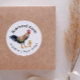 Niedlicher Aufkleber für die Eier, die Sie verkaufen. Es gibt niedliche Aquarellbilder von Hühnern und Küken. Du kannst deinen Bauernnamen auf dem Aufkleber hinzufügen.