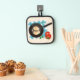 Eierspeisen in Pfanne mit Tomaten und Grüntöne Topflappen