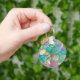 Wilde Fülle von dekorierten Ostereiern in Aqua-Gelb und Rosa. Feierliche und lustige Geschenkidee für den Frühling.