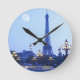 Eiffel Tower at Dusk Runde Wanduhr