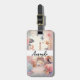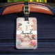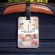 A luggage tag with a stylized Eiffel tower image surrounded by pretty butterflies and delicate garden flowers.